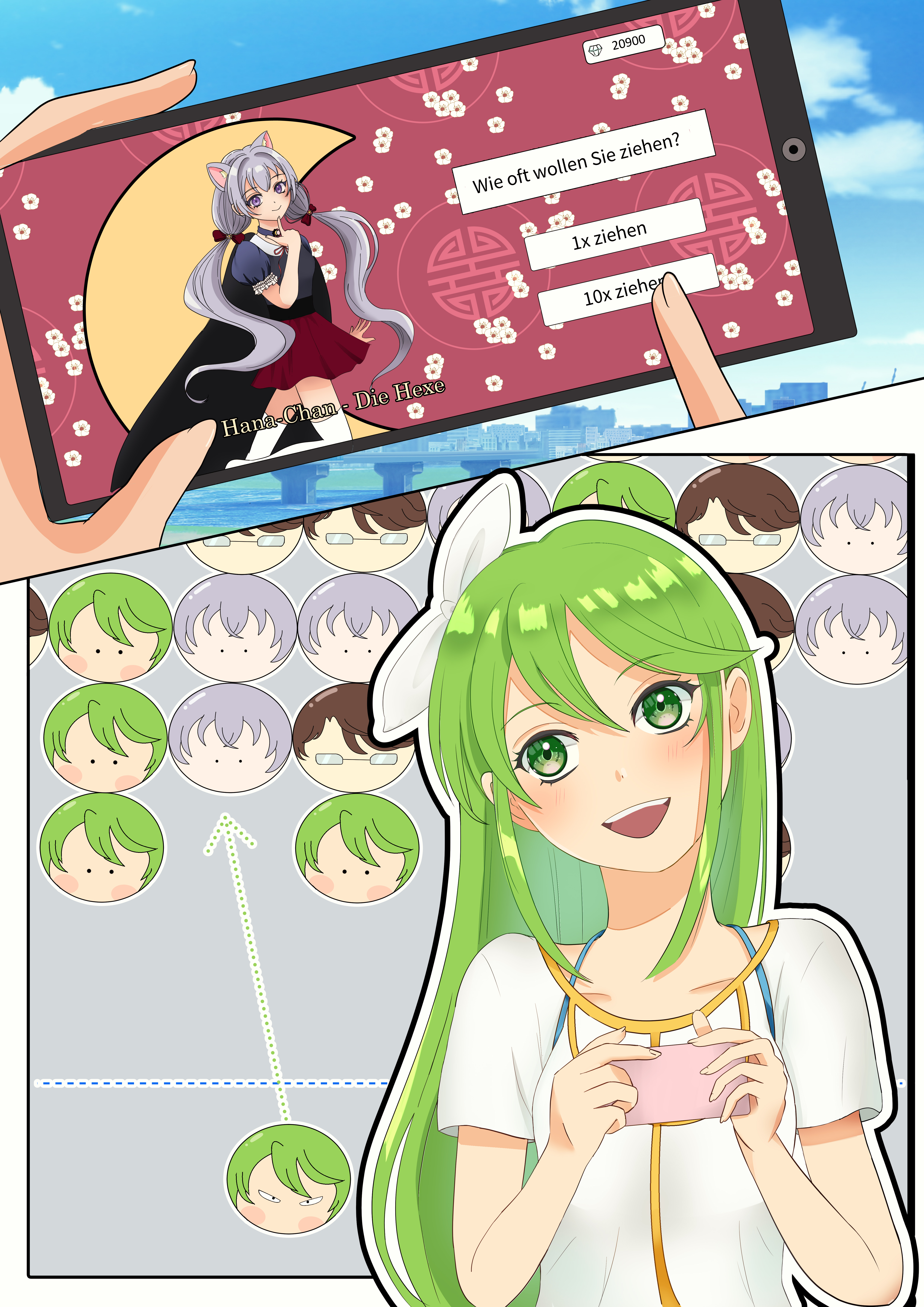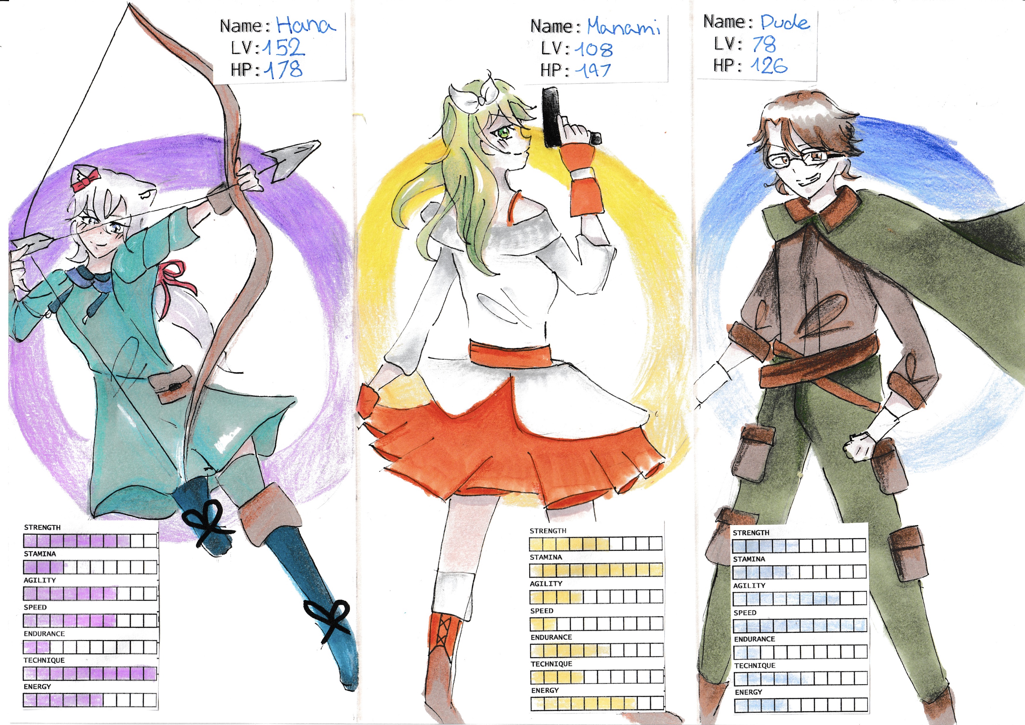 Stellt euch vor: Manami mit ihren grünen Haaren stürzt sich, mit einem Laserschwert bewaffnet, in ein Sci-Fi-Rollenspiel. Hana-chan, das anmutige Fuchsmädchen, wird im nächsten Gacha-Game zur Hauptfigur. Und Dude-kun? Der findet natürlich erst mal den Pause-Knopf... [Vorlagen der Charaktere]